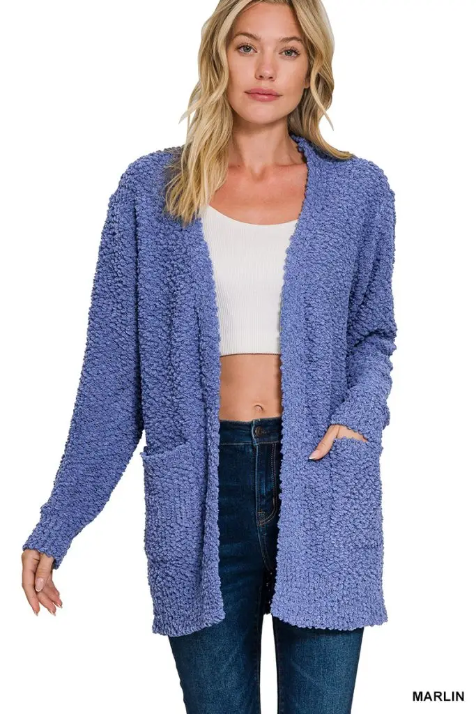 Long Sleeve Popcorn Sweater Cardigan With Pockets