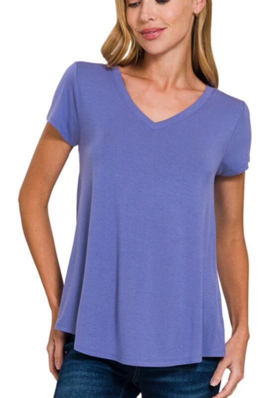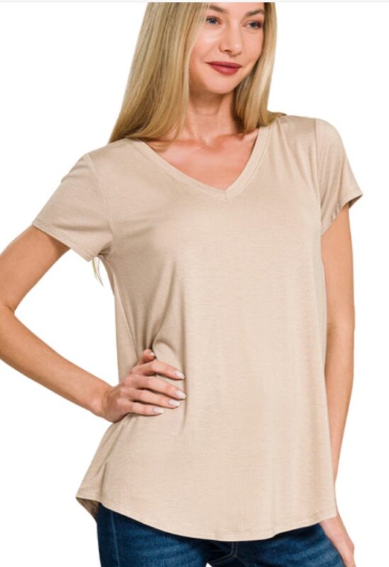 V-NECK ROUND HEM LINE SHORT SLEEVE TOP