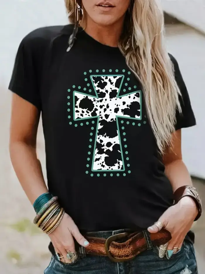 BLACK COW PRINT CROSS GRAPHIC TEE
