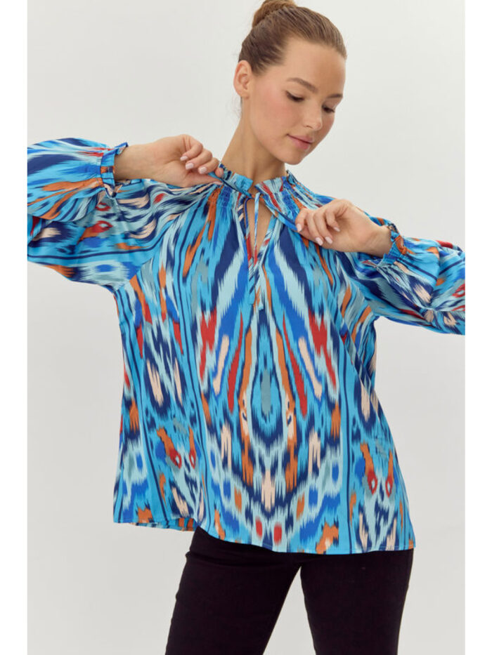 Blue and Rust Print Top