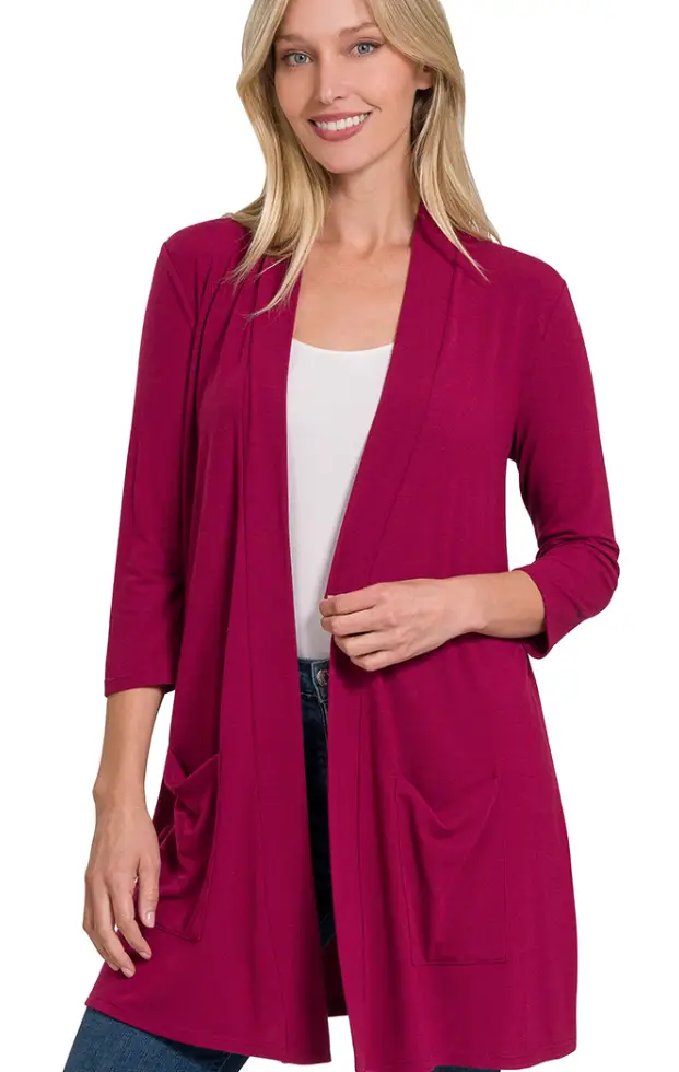 CARDIGANS WITH 3/4 SLEEVES AND POCKETS