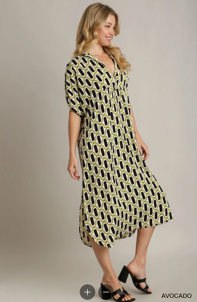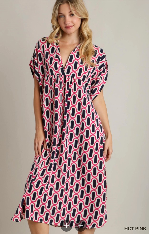 COLLARED SPLIT NECK GEO PRINT DRESS