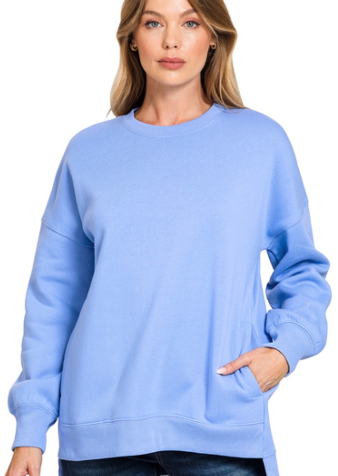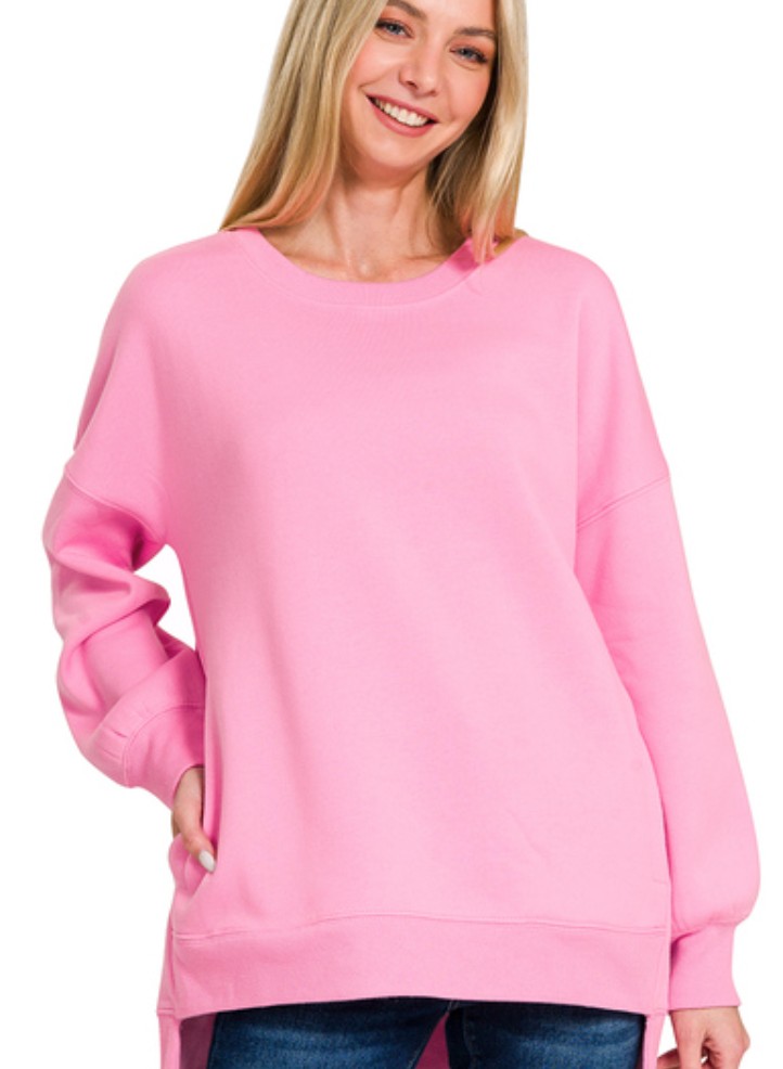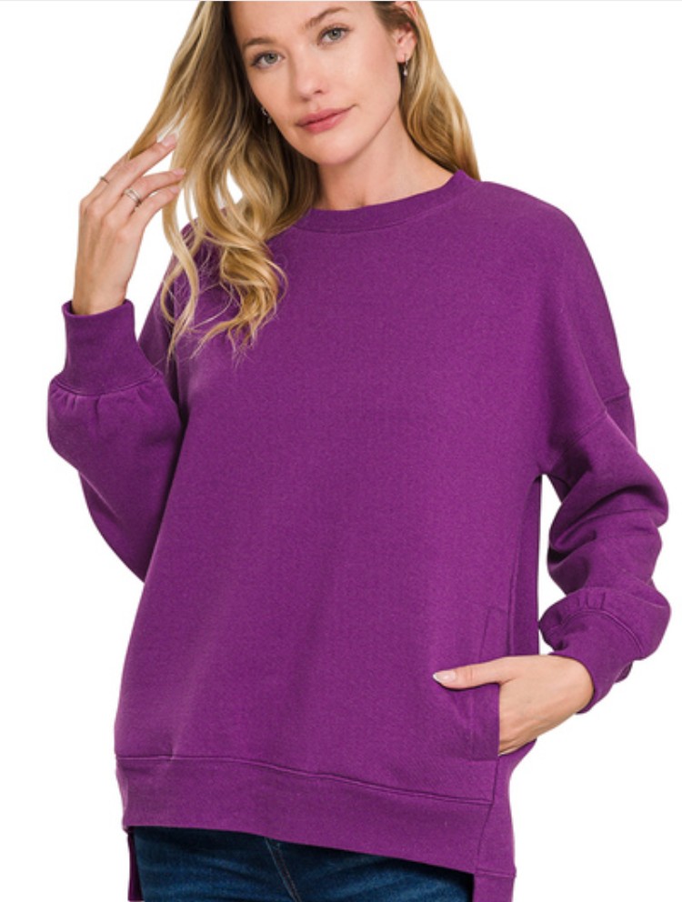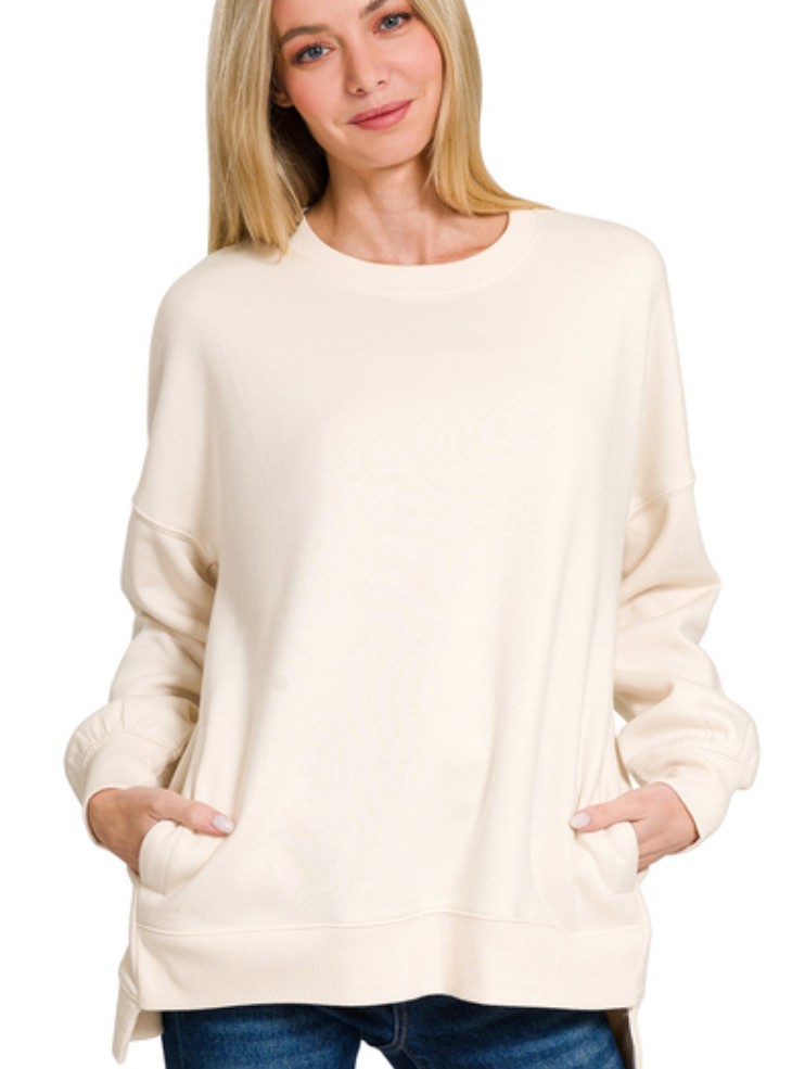 FLEECE BOYFRIEND PULLOVER WITH POCKETS
