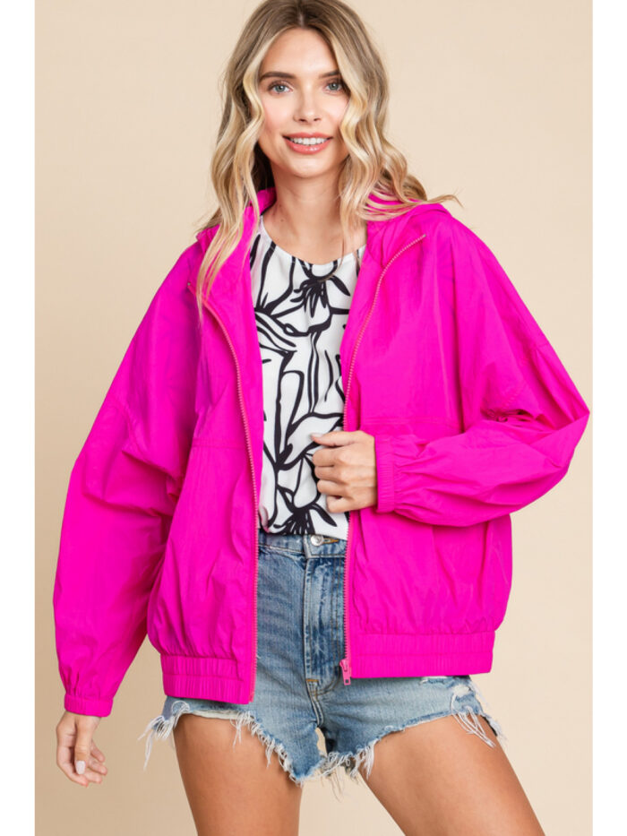 HOT PINK WIND BREAKER WITH HOOD AND POCKETS