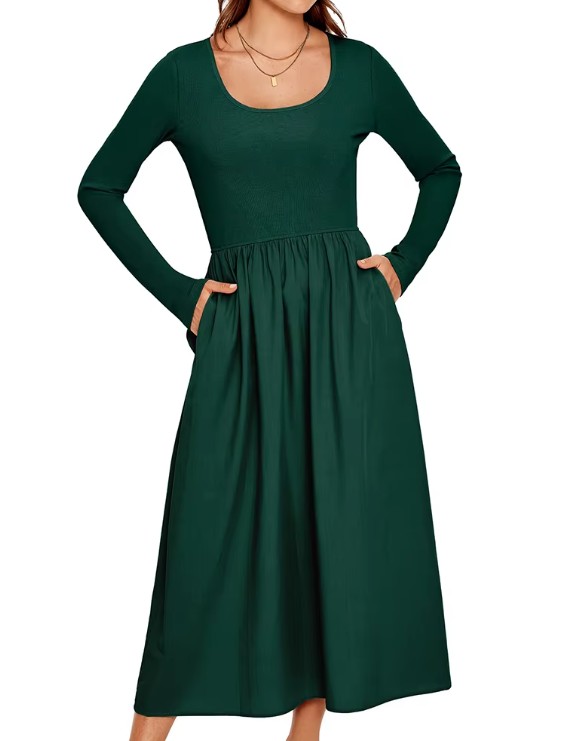 LONG SLEEVE TIERED MAXI DRESS WITH POCKETS