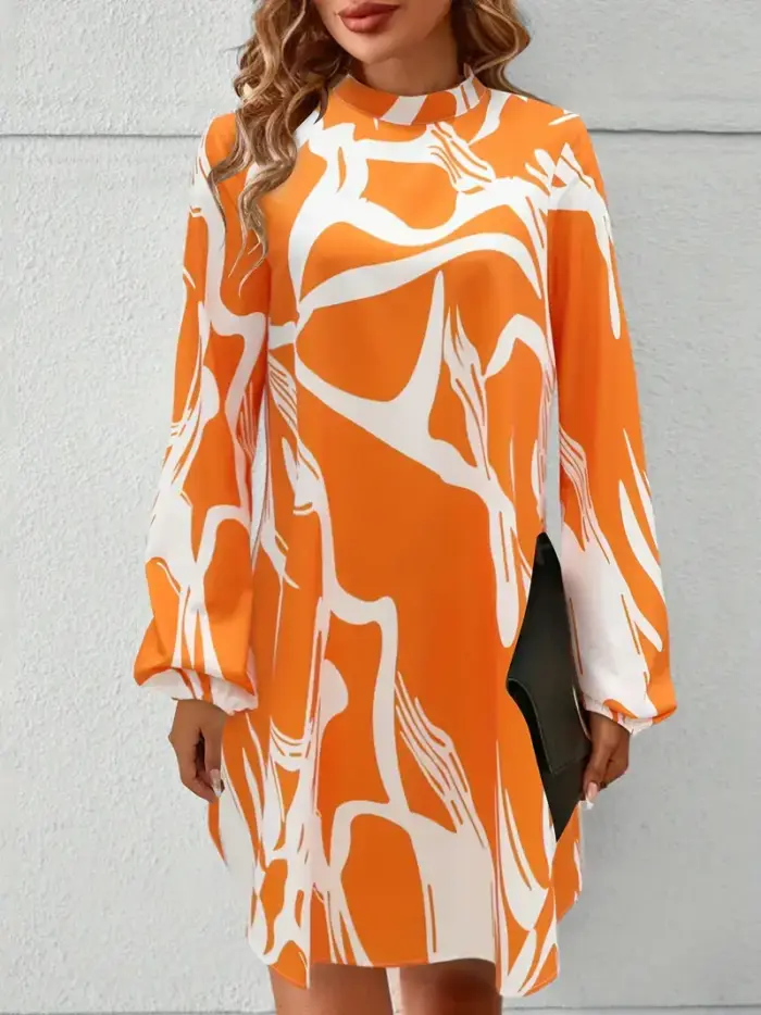Orange and White Geometric Print Dress