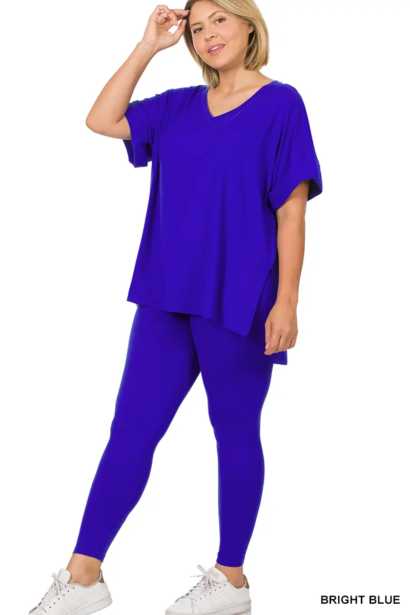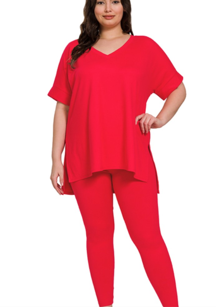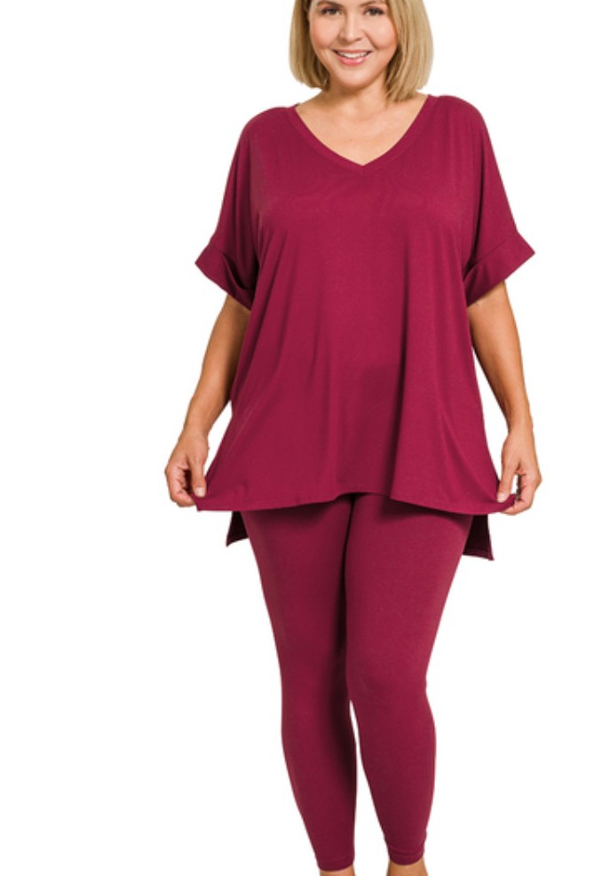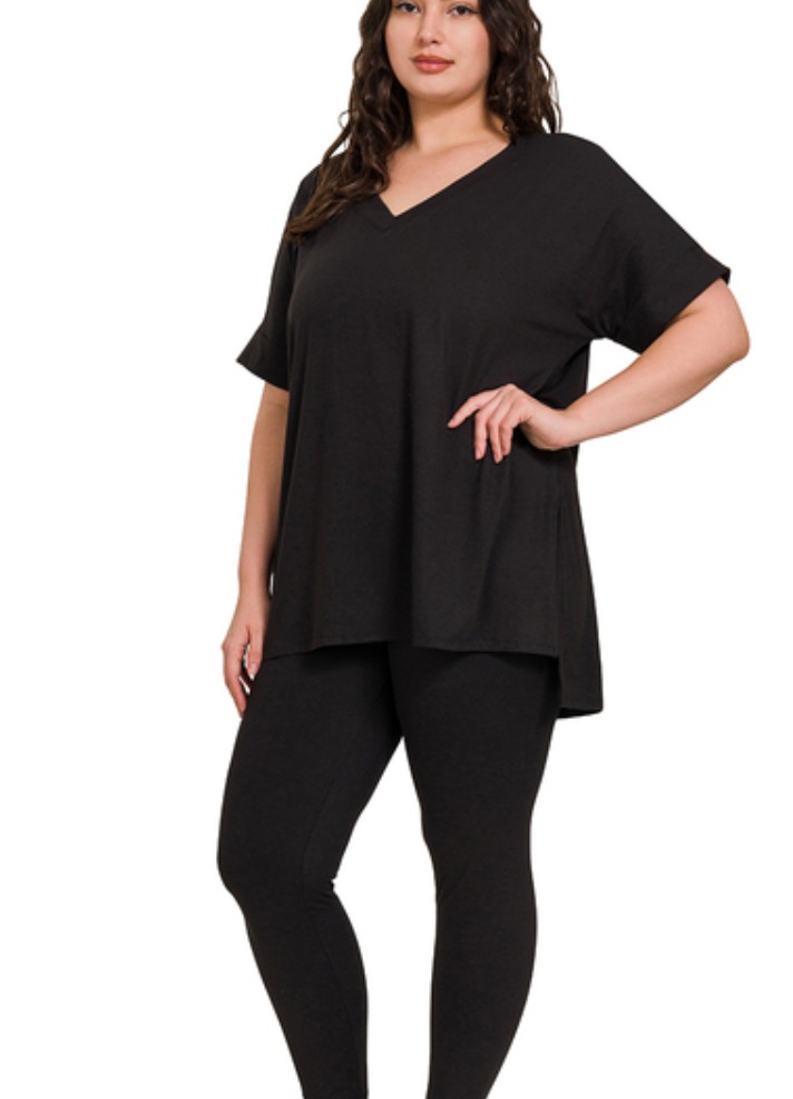 PLUS SIZE BUTTERY SOFT V-NECK SHORT SLEEVE LOUNGEWEAR SET