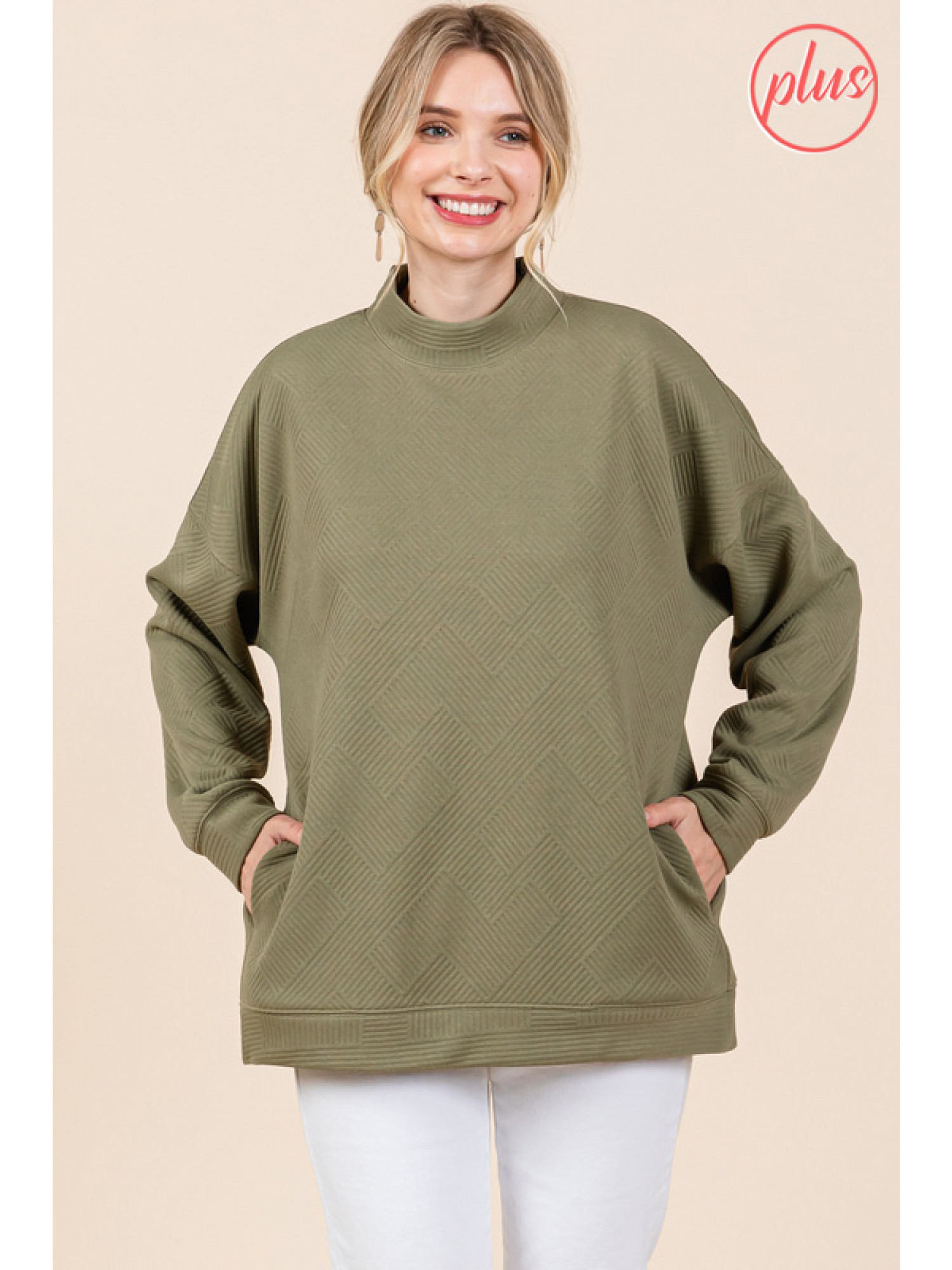 PLUS SIZE OLIVE TEXTURED MOCK NECK PULLOVER