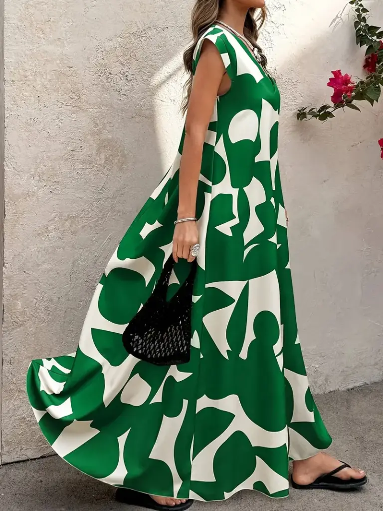 V-NECK FLORAL KELLY GREEN DRESS