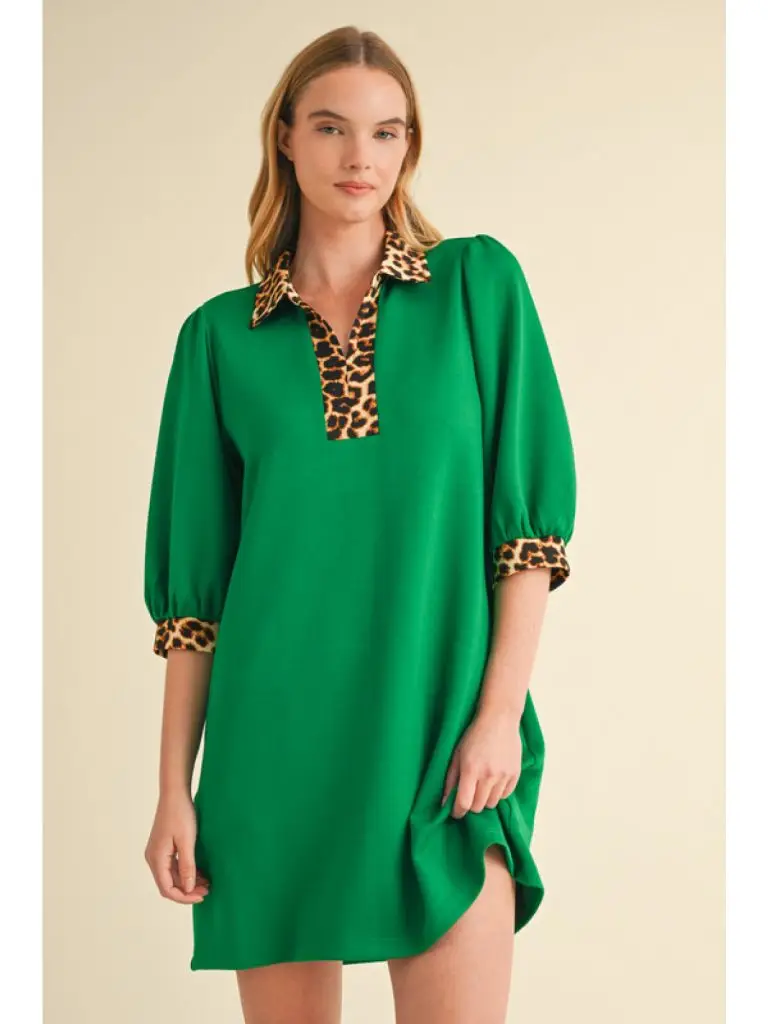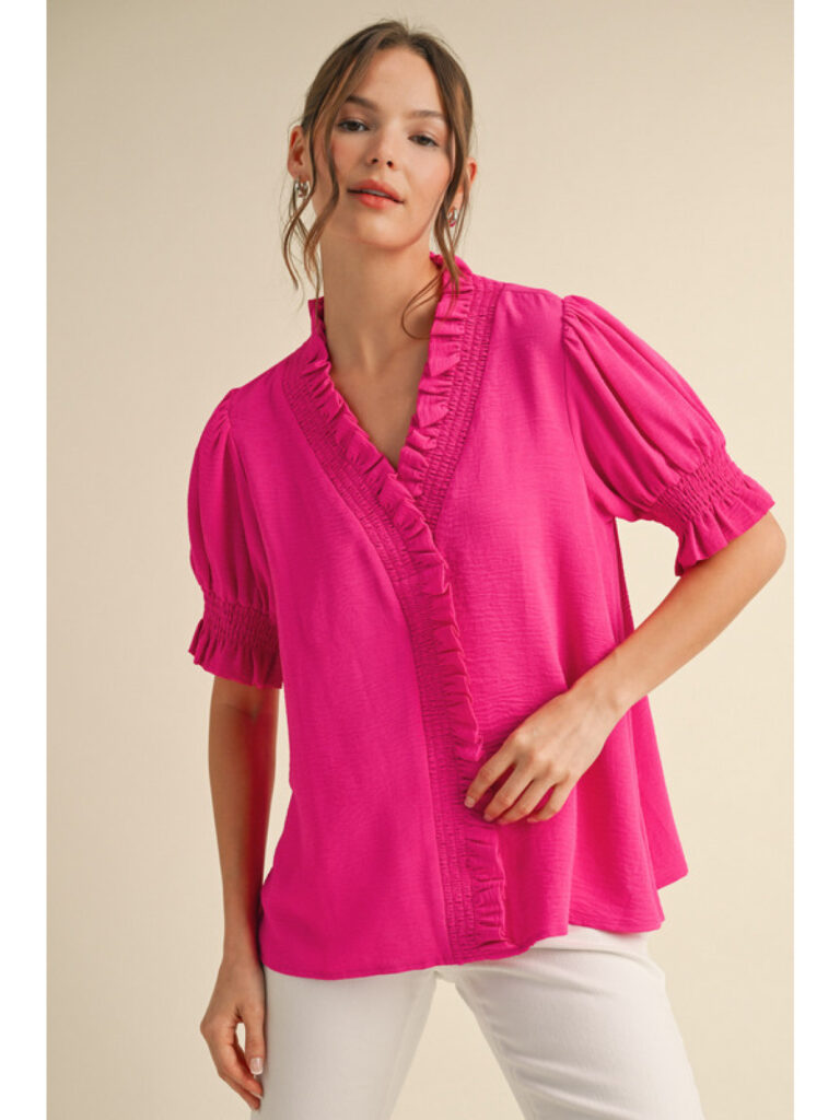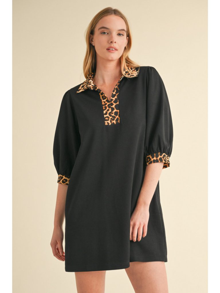 SHORT SLEEVE BLACK PLETED DRESS WITH RUFFLE TRIM